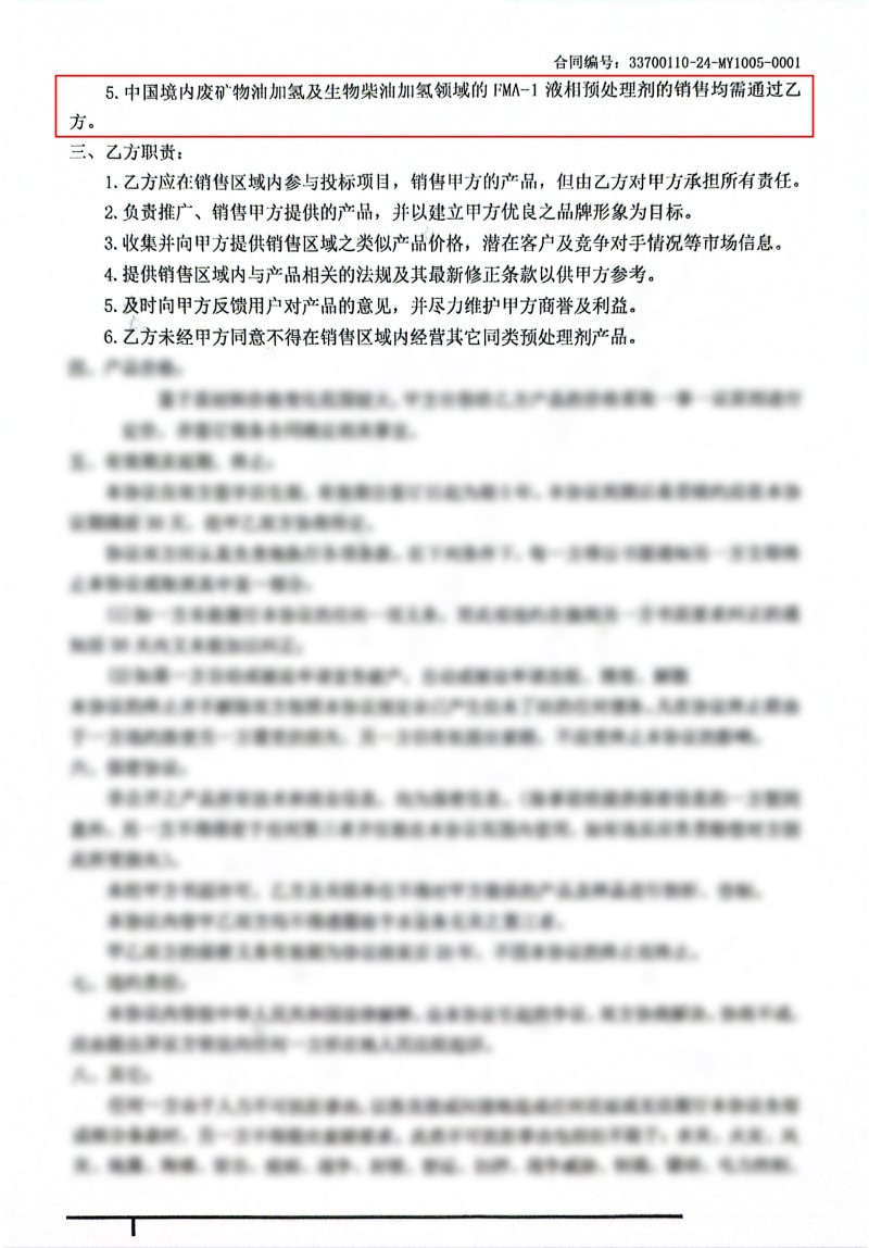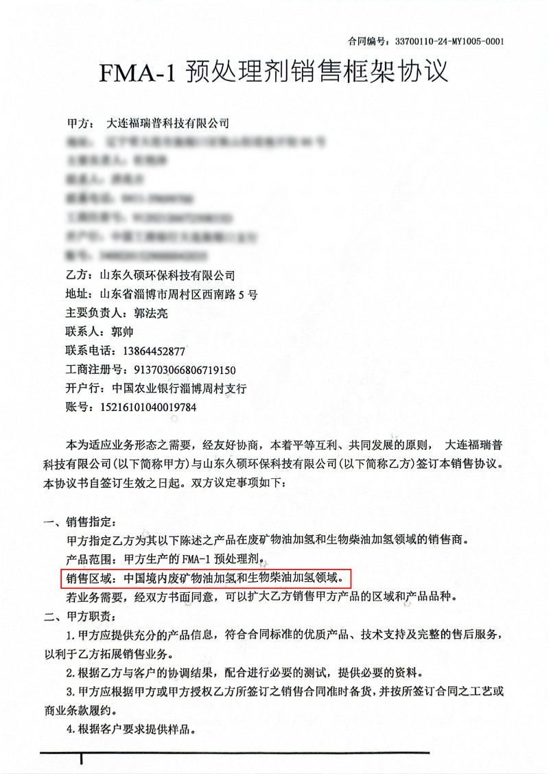 FMA-1已在新疆某企業5萬噸/年全餾分油廢礦物油加氫再生裝置工業應用,該套裝置采用均相預處理工藝,以FMA-1為預處理劑,取得良好效果,預加氫液收達99%,較對比劑提升8%,廢礦物油再生經濟性大幅提升,受企業高度好評。