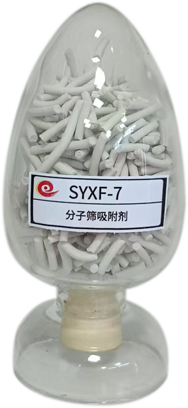 本產品采用NaY型分子篩作為吸附劑的活性組元。NaY型分子篩具有八面沸石籠結構,NaY型分子篩硅鋁比較高,有效孔徑較大。其選擇性、吸附活性、熱穩定性、抗酸性較好。本公司生產的條狀吸附劑.牌號為SYXF-7。