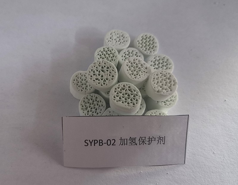 SYPB-02是負載適量金屬的蜂窩鳥巢保護劑,此保護劑是在高孔容大比表面積異形載體上負載優選的活性金屬組元,可對原料中的膠質和烯烴以及稠環芳烴、金屬進行轉化和加氫飽和,達到防止壓降上升、延長運轉周期、脫膠質、保護主催化劑的目的。